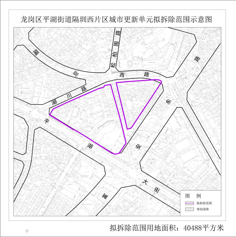 4.龙岗区平湖街道隔圳西片区城市更新单元拟拆除范围示意图