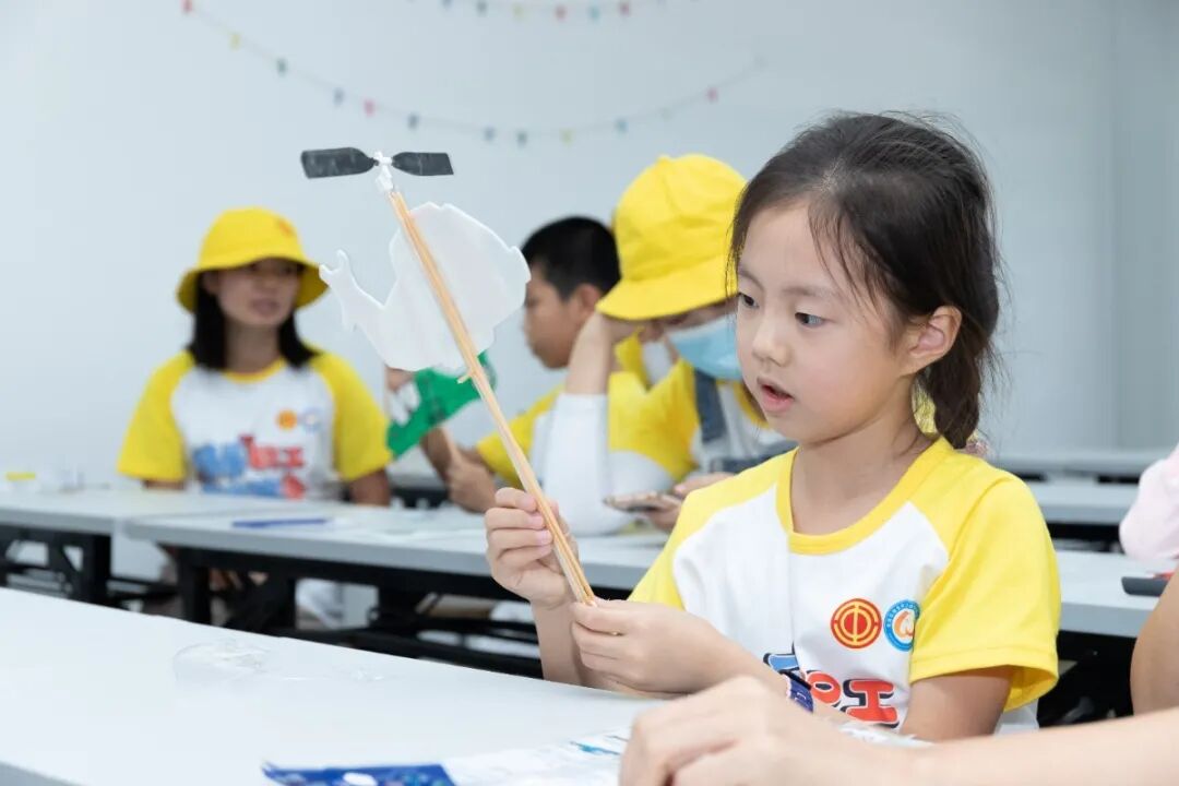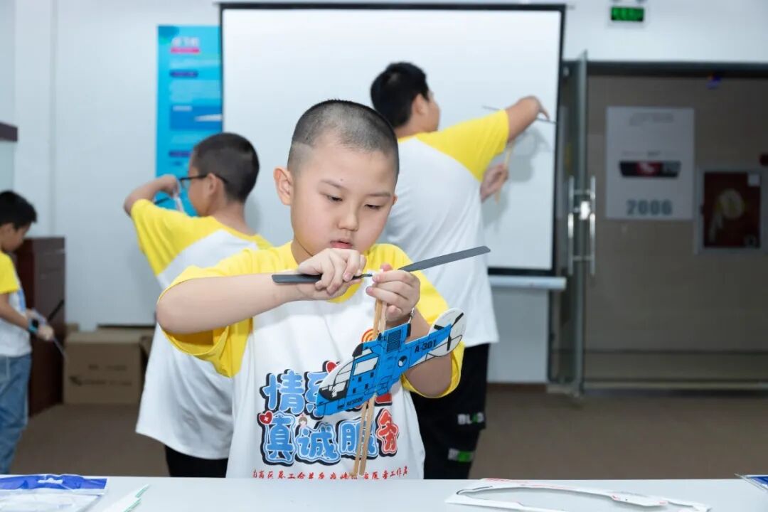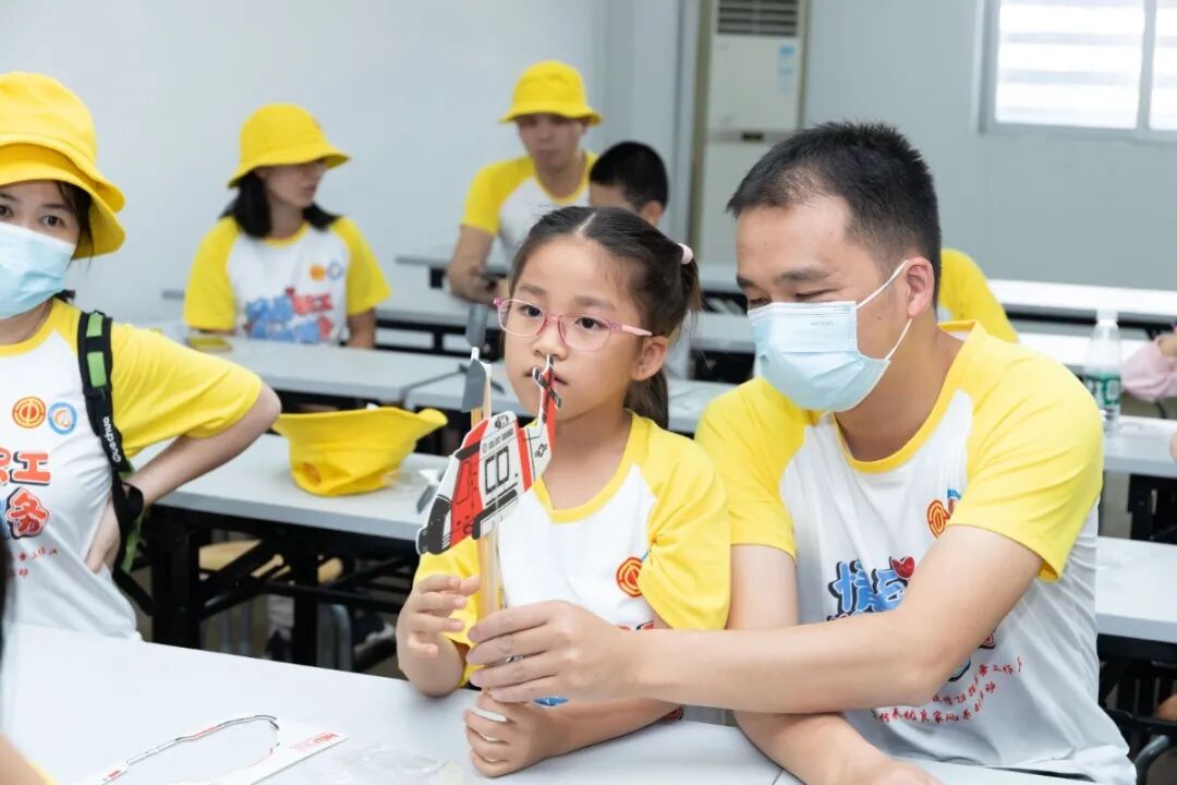 在活动尾声时,亲子航模制作环节,圆了孩子的飞天梦。专业老师为大家讲解了航模的起源,航模的构造及其作用,孩子们积极参与互动,举手踊跃发言。接着老师给大家分发了小航模制作材料,耐心讲解完成制作步骤,家长和孩子们一起完成航模拼装等环节,在专业航模辅导老师的指导下,孩子们纷纷抓紧机身,转紧螺旋桨,“嗖”的一声,机翼在风中划过,带着孩子们的科学梦飞向天空。