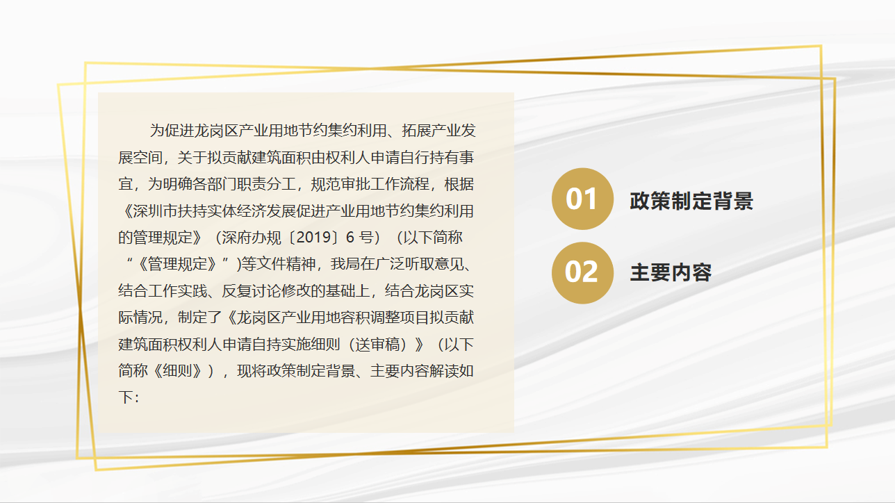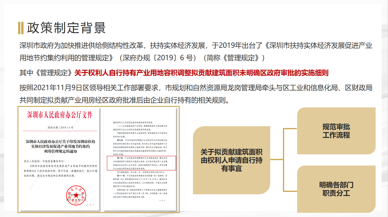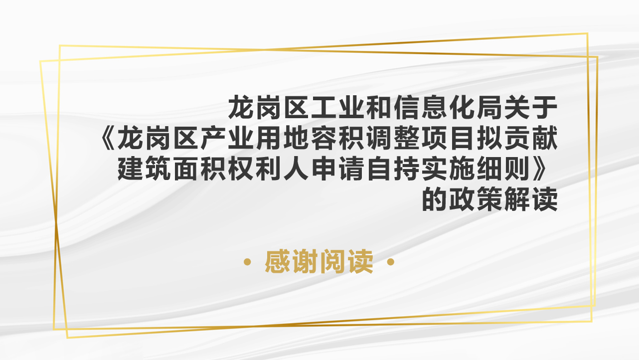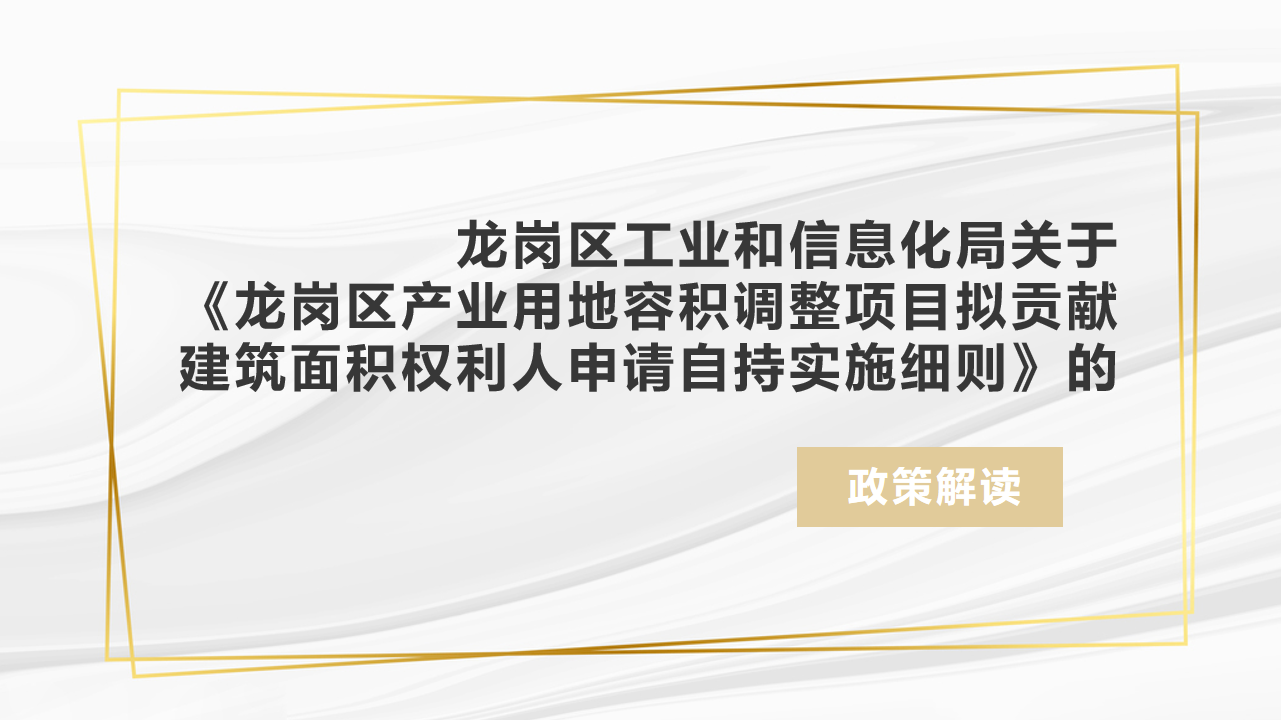龙岗区工业和信息化局关于《龙岗区产业用地容积调整项目拟贡献建筑面积权利人申请自持实施细则》的政策解读