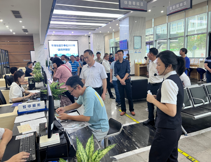 6月14日下午,平湖街道便民服务中心开展主题为“营造良好营商环境,打造人民满意的服务型政府”的“政府开放日”活动。当天活动以参观、展示和体验的形式开展,邀请了社区代表、居民代表、部分辖区企业代表、媒体代表等30余人参加,观看了街道便民服务中心宣传视频,参观无障碍环境、自助服务区、阅读区、母婴室等,还了解了该中心打造人性化、精细化、便捷化、智能化及“一站式”政务服务,以及在提高服务效率与服务品质的服务亮点项目。