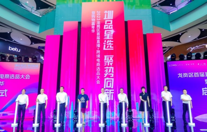 8月11日,“2023龙岗区首届直播+跨境电商选品大会暨购物嘉年华”在深圳市龙岗平湖华南城盛大开幕。本次活动由深圳市商务局、中国国际贸易促进委员会深圳市委员会、深圳市龙岗区委、区政府指导,深圳市龙岗区工业和信息化局、深圳市龙岗区文化广电旅游体育局、龙岗区平湖街道主办,华南城商业管理(深圳)有限公司承办,并得到多家政府单位及行业协会的协办和支持。