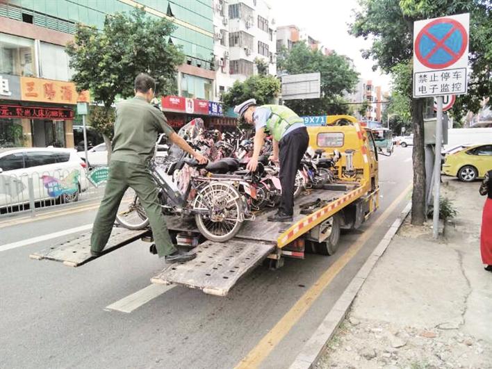 交警查扣一批违法上路电动自行车。