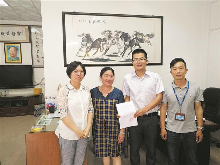 抽调干部纪蓉(左一)、鲁鹏(左三)与项目权利人签约。