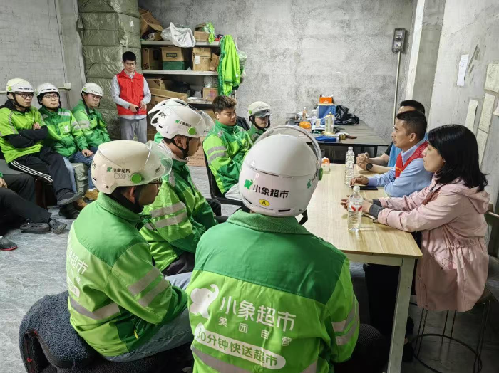 活动首站,一场暖“新”问需恳谈会在南约社区小象超市站点举行。围绕配送途中常见的“进门难、停车难、找路难、充电难”等问题,以及权益保障、生活需求等话题,骑手们与街道、社区工作人员展开坦诚交流。