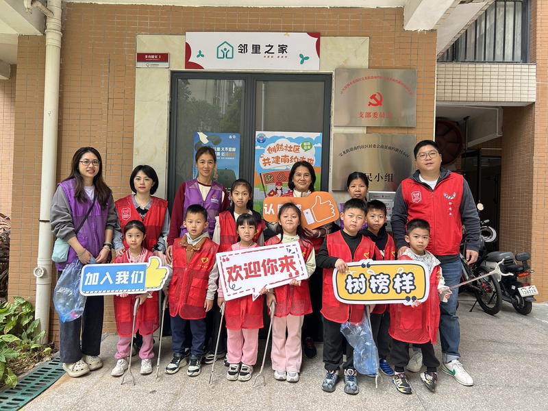 在南约社区,16名巾帼志愿者及亲子义工前往南景南约新村开展“见‘圾’行事 绿色‘童’行”学雷锋主题活动。活动以儿童为纽带,通过“一米视角”引导家庭参与社区治理,践行雷锋精神,共建绿色家园。