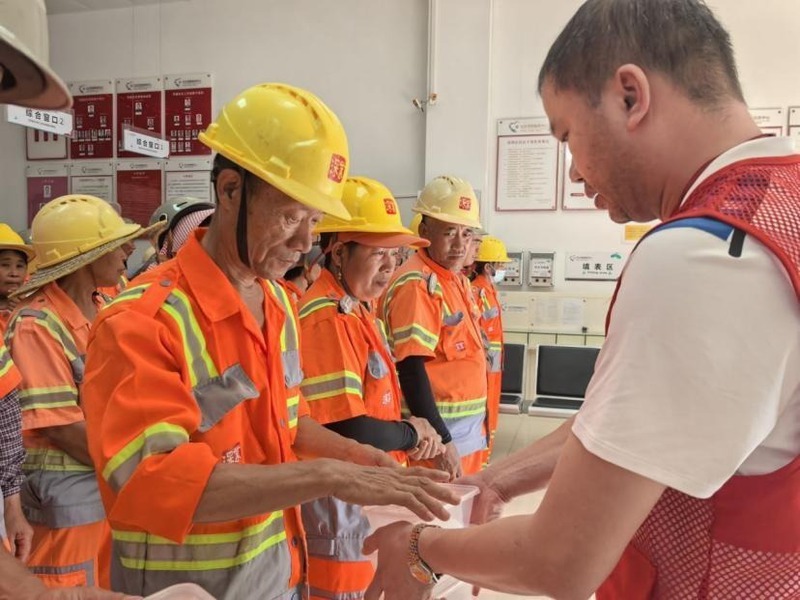 经过一番努力,一个个圆润饱满糍粑新鲜出炉,搭配清爽的百香果益力多饮品也同时完成,志愿者顾不上休息,便马不停蹄地将糍粑打包,一部分美食送往社区的困境群体和高龄老人家中,并询问他们的生活起居和身体情况,叮嘱他们要保重身体,还有一部分送给社区的环卫工人,让他们在辛苦之余感受到社区的关怀。