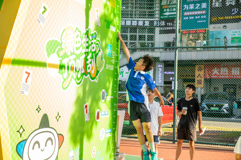 随着活动的推进,“绿色生活 顶呱刮”运动体验区逐渐热闹起来。这里,趣味运动与公益科普巧妙结合,吸引了众多市民的目光。“‘投’出风采”定点投篮、“‘脑动’动出彩”足球挑战、“‘跳’出精彩”跳高、“‘哐’动时刻”保龄球等趣味互动游戏,点燃了现场的热情。每一次投篮命中的欢呼、每一次思考破局的专注、每一次奋力跃起的身影,都让运动的快乐感染着现场的每一个人。长长的队伍和灿烂的笑容,共同绘就了社区活力四射的图景。