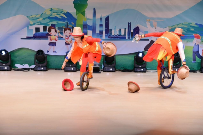演出在舞蹈《欢乐宝龙》中拉开帷幕,快板《生态新风文明城》以清脆节奏、朗朗上口的唱词,将垃圾分类、绿色出行、文明城市建设等身边事娓娓道来,让观众在欢笑中加深对生态保护的认知。杂技独轮车技《环保卫士》是当晚的“视觉焦点”。优秀青年杂技演员王军魁、刘庆歌踩着独轮车完成“平衡技巧”“模拟捡垃圾”等高难度动作,将“环保卫士”的形象具象化,惊险又充满意义的表演引得台下掌声、欢呼声此起彼伏。京剧《穆桂英挂帅》选段、古典舞《生态·绿韵·共生》、魔术《奇幻》、女声独唱《孝敬父母》《幸福中国一起走》等节目轮番上演,精彩纷呈。节目中穿插的“生态·人口·乐龄”主题有奖问答环节,更是增强了观众的参与感,在轻松互动中强化对主题内容的理解与记忆。最后,歌伴舞《春风十万里》为整场演出画上圆满句号。