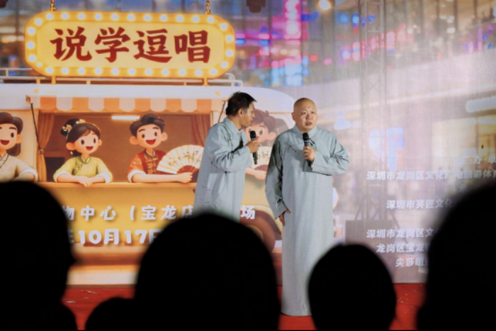 10月17日晚,由深圳市龙岗区文化广电旅游体育局主办,深圳市笑匠文化传媒有限公司承办,龙岗区文化馆宝龙街道分馆、宝龙社区工作站及尖莎咀购物中心(宝龙店)协办的“龙岗快乐号·站站都欢笑”曲艺巡回演出在尖莎咀购物中心(宝龙店)广场成功举办。