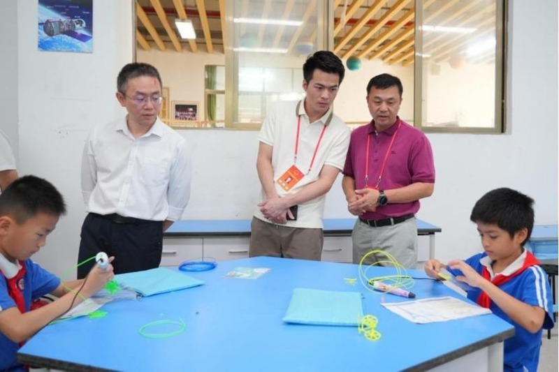 在丰富多彩的社团展教馆,孩子们用3D打印出无限可能的“世界”;航天航海模型在同学们心底根植“飞天入海”的科技梦;一群小娃娃正在木工和电子电工展教馆里探寻“工匠精神”的成长轨迹;师生在“沐野田园”里种植的蔬菜瓜果正在生长……调研团评价,珊外“双减”减量加值、加质的文化,激活了学生特长爱好,是培养“文化+特长”多面手、复合型人才的好探索。