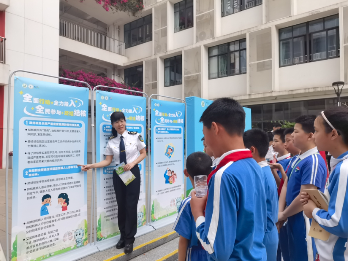 3月24日是第三十一个世界防治结核病日,今年的宣传主题为“全面行动 全力投入 全民参与 终结结核”。为织密织牢结核病防控网络,健全“区慢病院—街道公卫—医疗机构”三级联动工作机制,提升辖区公众结核病防治知识知晓率和健康防护能力,深圳市龙岗区宝龙公共卫生服务中心(以下简称宝龙公卫中心)联合辖区医疗机构、社区、企业及学校开展系列主题宣传活动,以精准防控举措守护群众身体健康,助力健康深圳建设。
