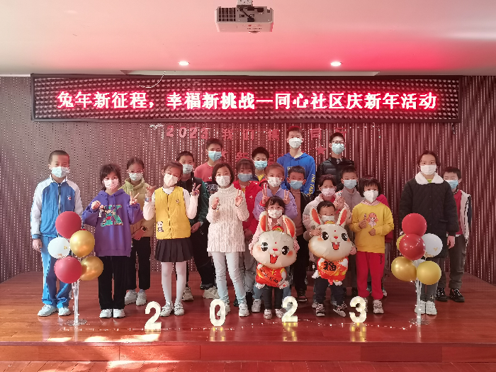 “今年我们特地选在元旦后的第一个周末,以‘兔年新征程,幸福新挑战’为主题组织社区新年活动。”同心社区工作人员介绍。在“福气相传”环节,同心社区社工随机将活动参与者分成两组,大家通过合作的形式将气球“打”到对方队伍,球落地少的一组则获得胜利,参加者们配合默契,传球、“扣”球,不断组织着进攻的同时也做好防守,共同将福气稳稳相传。