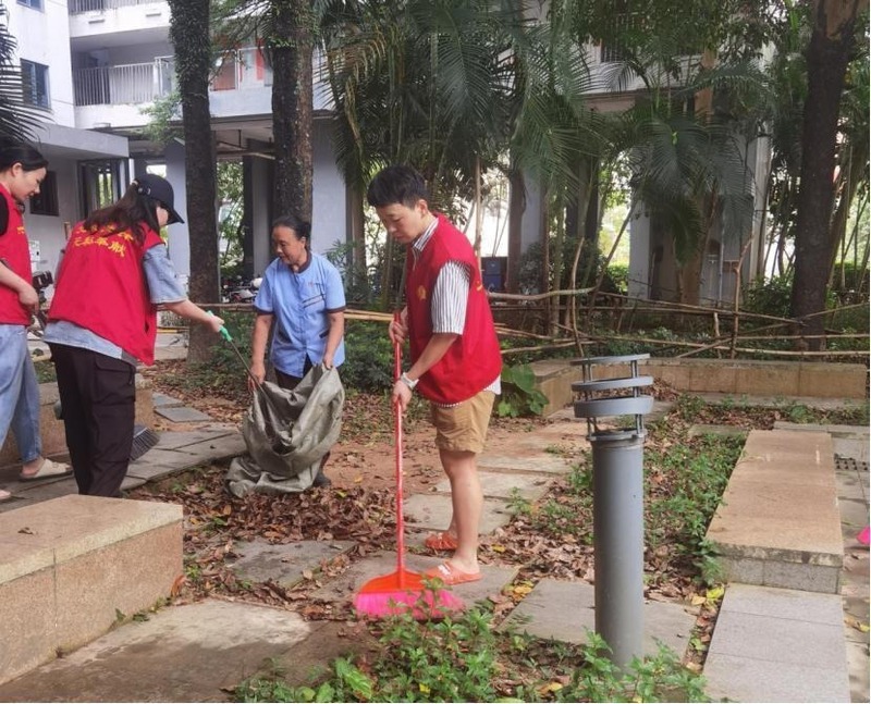 活动中,党员志愿者率先垂范,带着夹子、扫帚、垃圾袋等工具,重点对小区下水道、绿化带枯枝堆、健身娱乐区周边等区域进行彻底清扫,清理积水及枯枝败叶,并将散落的生活垃圾、废旧杂物集中清运;同时,针对居民阳台闲置花盆托盘、积水桶、绿化带内塑料瓶等易孳生蚊虫的“积水陷阱”,志愿者逐一排查、逐个清理,倒空积水后进行分类处置,并由物业工作人员对积水点位周边喷洒消毒药剂,从源头切断蚊虫繁殖链。