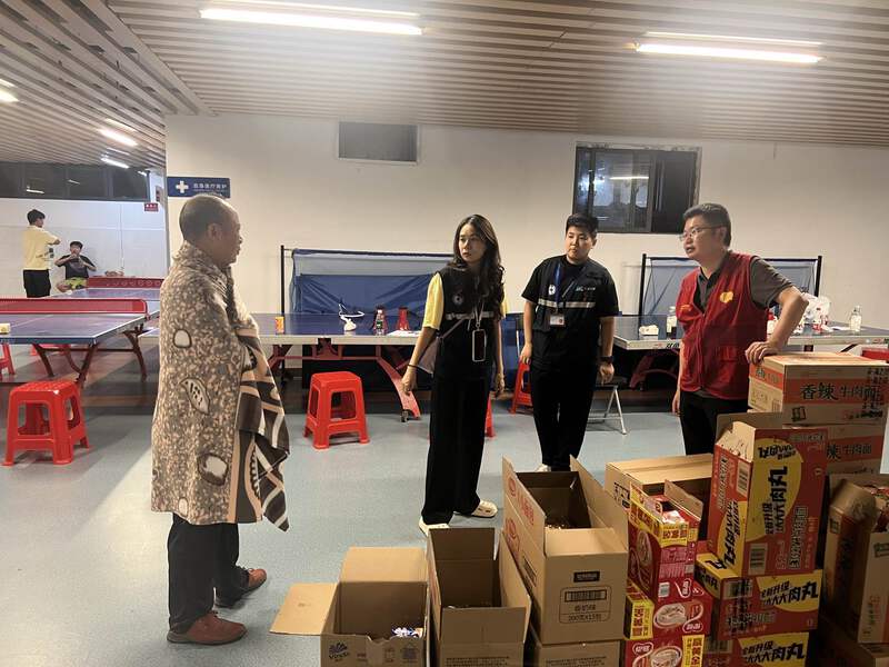 与此同时,育贤学校避难场所也同步运转。30名转移群众在此休息,社康医生再次上门巡诊,测量血压、发放口罩,确保“健康无死角”。社区工作人员维持秩序、安抚情绪。同乐派出所民警更是现场开课,为避险人员讲解安全防范知识与纪律要求。“人在,心稳,台风吹不散我们的团结。”