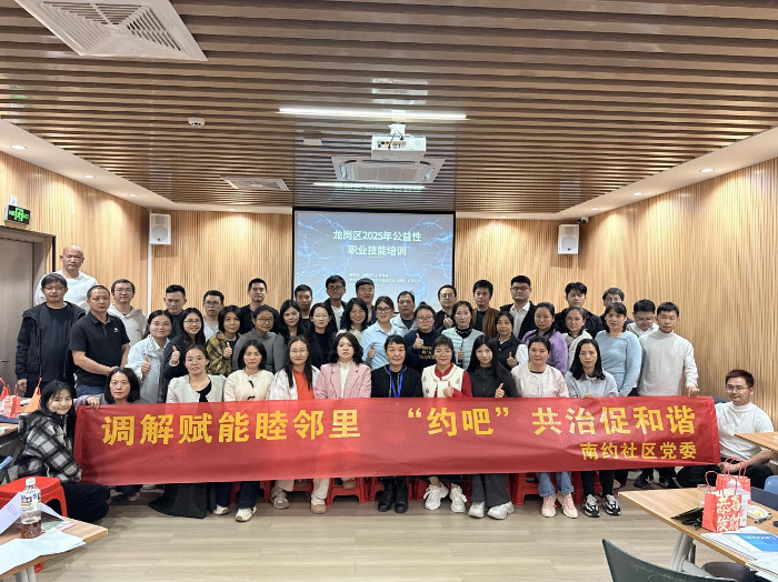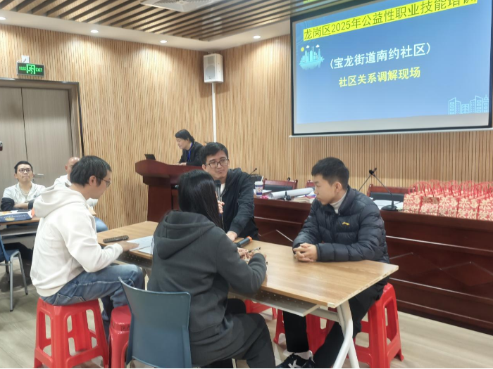 近期,龙岗区2025年公益性职业技能培训“社区关系调解”课程在宝龙街道南约社区党群服务中心结课。