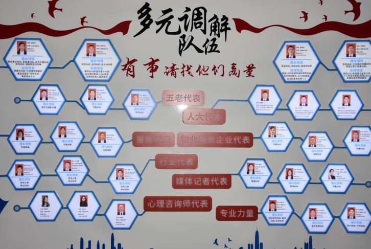 社会治理方面,为提升辖区综合治理能力,完善平台功能优化服务,该社区结合群众在社会治安、公共安全、矛盾纠纷化解等方面的新情况,建设了含一站式纠纷多元化解中心、联合执法勤务室、心理咨询室和宣泄室等多功能的平安建设服务中心,可解决群众劳动就业、心理健康、纠纷调处等方面需求。同时,落实“社区吹哨、部门报到”工作机制,整合街道多方力量,开展“小兵团作战”,成立由13个部门组成的联合执法勤务室,实现执法在社区、管理在社区、服务在社区,进一步提升社区综合治理水平。其次,组建多元调解力量做强个人品牌调解,打造“调解超市”,开展“点单式”“码上办”“邀请式”“联调式”调解,形成纠纷收集、调处全链条机制,让群众信访一扇门进出,矛盾纠纷一揽子调处,使得一站式纠纷多元化解中心成为回应群众诉求、化解矛盾纠纷的终点站。自社区成立以来,共计接访矛盾纠纷1754宗,成功调处1735宗。