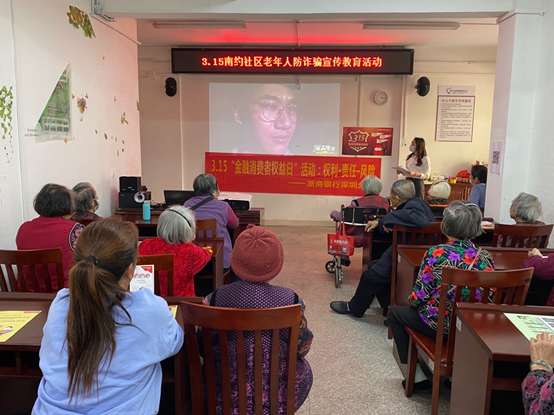 当天下午,同乐社区工会联合社区综治办开展职工维权宣传活动。现场通过发放宣传折页、科普法律法规、以案说法等方式,引导职工居民学法、知法、懂法、守法、用法,倡导职工居民用正当法律知识维护自身合法权益。南约社区党委联和浙商银行还为社区长者准备了一场开展防范电信诈骗宣传活动,现场银行工作人员以播放诈骗案件视频、派发防诈骗宣传单、案例讲解、揭露各种诈骗伎俩等方式,提高社区长者防范意识,并在活动末尾设置有奖问答环节以此来巩固宣传活动的“知识点”。