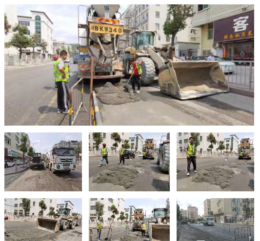 4月1日上午,虽然天气炎热,但园区汇鑫党支部为民办事的热情更高。在两名党员的带领下,汇鑫混凝土公司的4名工作人员对破损路面进行了施工修复,填补前段时间因雨水造成的路面坑洼,赢得了居民的称赞。