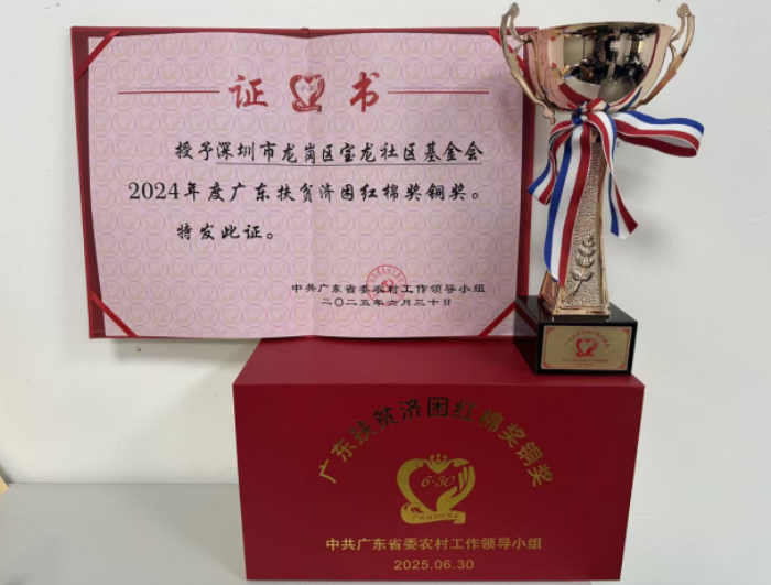 日前,广东省委公布了2024年度助力乡村振兴红棉杯奖名单,深圳市龙岗区宝龙社区基金会成功荣获 “广东扶贫济困红棉奖”!该基金会已连续两年获此殊荣。