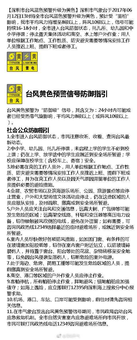 台风黄色预警信号防御指引