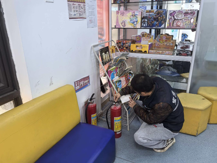 排查中,网格员重点围绕四个方面实施精准检查:一是检查消防设施状态,确保灭火器、消火栓、烟感报警器、应急照明及疏散指示标志完好有效;二是清理疏散通道,移除堆放杂物,保障“生命通道”畅通;三是检查用电用气情况,细致核查电气线路是否老化、是否存在私拉乱接现象,严格排查厨房燃气安全与电动自行车停放充电等隐患;四是检查应急处置能力,现场询问机构负责人消防安全制度落实情况及应急处置流程,查验教职工灭火器使用操作是否熟练。