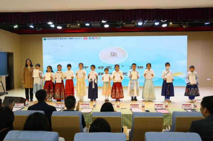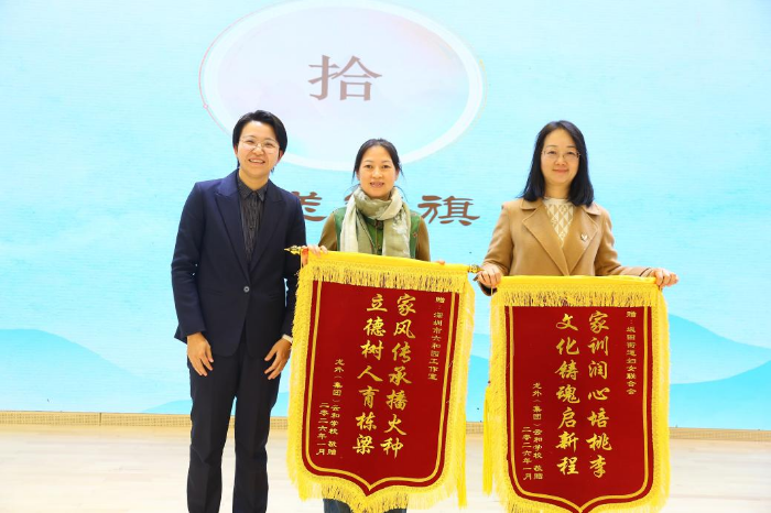 为壮大坂田街道“中华好家风”宣讲队伍、表彰先进典型,活动为24名学生代表颁发了“中华好家风宣讲员”聘书,并对该校“三余读书社”的“阅读领航家长”代表进行了表彰。在充满书香与敬意的赠书、赠旗环节,街道领导向云和学校赠送了经典书籍;学校向街道妇联和深圳市六和园工作室回赠了锦旗,表达诚挚谢意。最后,全体与会人员移步至初中部二楼,共同参观了“中华好家风”主题展览,在图文并茂的展陈中,进一步领略中华家风文化的源远流长与时代内涵。