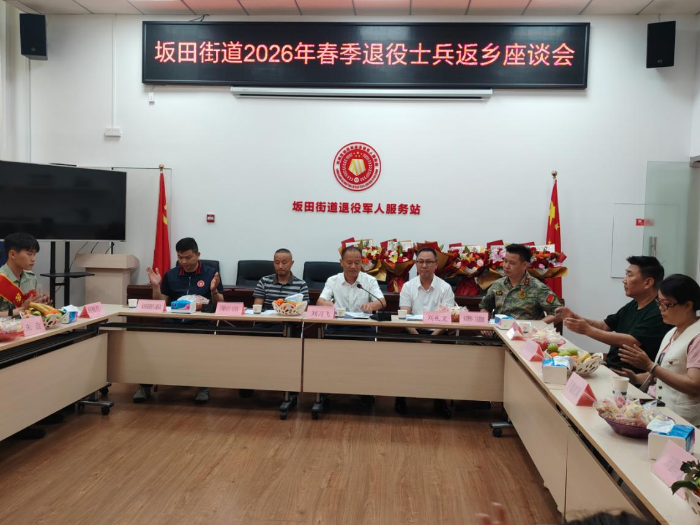近日,坂田街道召开2026年春季退役士兵返乡座谈会,街道党工委副书记刘习飞出席会议,公共服务办、应急管理办及各社区负责人,退役军人代表、2026年春季退役士兵及家属代表参会,会议由公共服务办负责人段国栋主持。