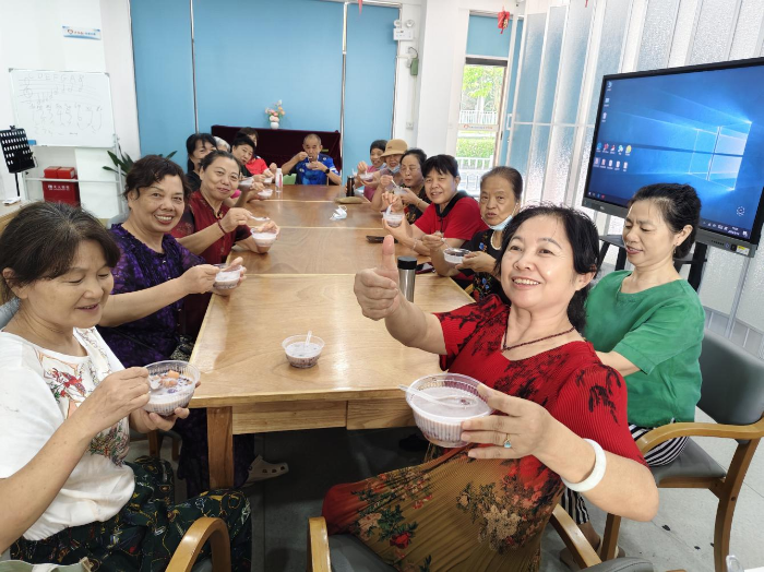 活动还特别设置了“甜品故事分享”环节,长者们一边品尝甜品,一边讲述与广式甜品的温情记忆,也分享了自己家乡当地的特色美食文化。长者郭阿姨说:“今天的小确幸是夕阳红给的,让我这个多年未有制作甜品的阿姨尝到了“甜头”,幸福感满满。”,夕阳红负责人说:“甜品不仅是食物,更是情感的载体。通过制作和分享,长者们重温了青春记忆,也感受到了传统文化的温度。食物是文化的容器,更是情感的邮差。一碗糖水,让长者们重新发现‘我行、我能、我被需要’。”