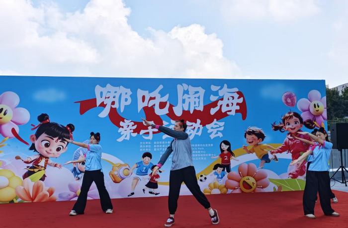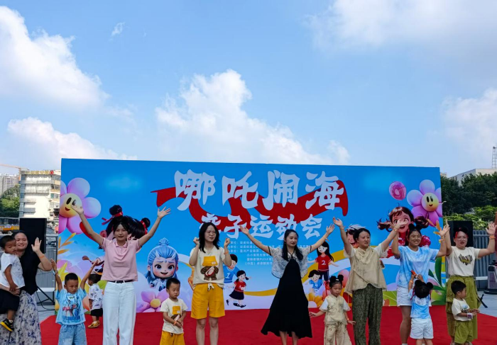开场的表演点燃全场。托育机构的老师们率先登场,头戴俏皮的哪吒头饰,脸上挤眼、咧嘴的夸张表情灵动又鲜活,逗得在场家长和孩子们忍俊不禁。全场掌声与笑声此起彼伏,热闹非凡。伴着《草裙舞》的欢快节奏,孩子们迈着蹦跳且带点憨态的俏皮舞步,那认真又可爱的模样,使得台下家长纷纷举起手机拍照记录。亲子走秀环节紧随其后,多组家庭轮番登场,有的家庭穿着亲子装,有的家庭即兴摆出创意造型,现场满是温馨与幸福。“平时工作忙,很少有机会陪伴孩子,今天来到星河双子塔打卡并参加亲子活动,这样的活动很有意义”家长王先生脸上满是笑意地说。