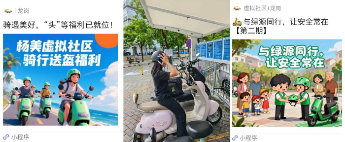 例如我们聚焦民生痛点联动公益资源。针对居民骑行安全需求,牵头联动辖区电动车销售商家,发起“免费送头盔+安全宣教”公益活动。通过“虚拟社区i龙岗”精准推送信息至电动车保有家庭,联动楼栋微信群形成“线上提醒+线下落地”闭环,线下发放头盔时同步普及骑行安全知识,推动居民安全意识从“要我安全”向“我要安全”转变,切实让“平台送安全”的认知深入人心。