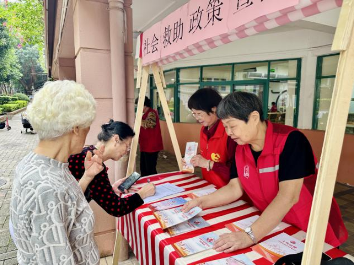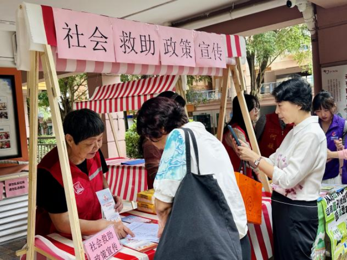 本次活动依托社区每月的便民服务日活动,创新采用 “政策宣传+便民服务”双轨融合模式,让惠民政策走出文件柜、走进人心里。活动现场,政策咨询台前人流不息,工作人员与志愿者们用亲切的乡音、专业的解读,为居民们细致地梳理低保、特困、临时救助等政策的申请条件与流程,将复杂的条文转化为易懂的家常话。一份份精心准备的宣传手册与面对面的交流解答,成为连接政策与居民的“暖心桥”。