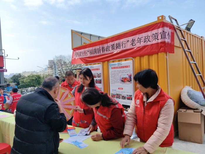 在新春佳节来临之际,为深化党建引领基层治理,切实提升长者服务水平,近日,马安堂社区党委在侨联东村精心开展“福满新春,政策随行”老年政策宣传活动,将惠民政策和节日温暖送到居民家门口。