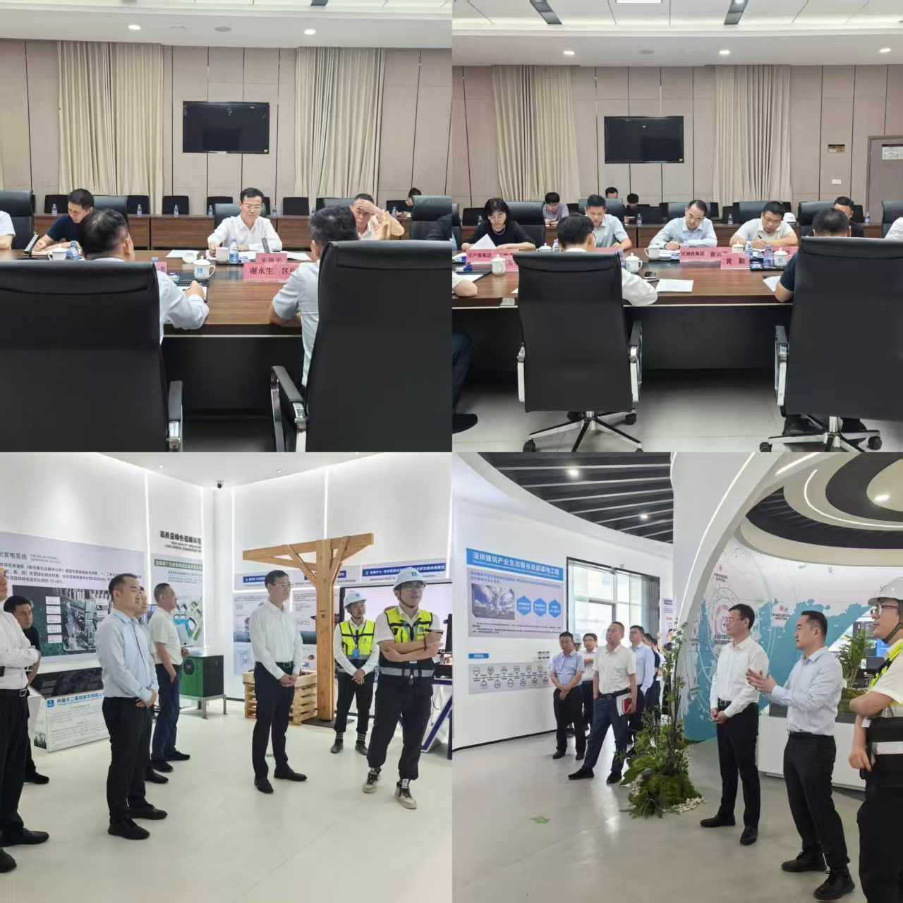 市住建局调研组首先参观生态智谷展厅,听取项目规划、建设进展介绍,并重点调研了智能建造管理平台、能耗监测平台、光储直柔等核心技术应用场景,深入了解项目在数字化管控、绿色低碳、智慧运维等方面的创新实践与建设成效。