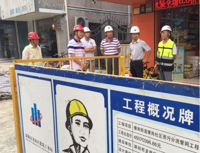 横岗社区雨污分流管网工程由区建筑工务局组织实施,施工单位是深圳市交运工程集团有限公司,监理单位是深圳市东部建设监理有限责任公司。