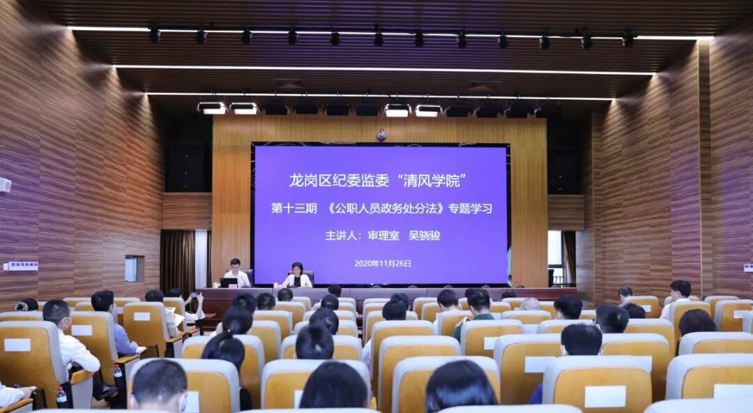 11月26日,龙岗区纪委监委第十三期“清风学院”培训举行。本期主讲人是来自案件审理室的年轻纪检监察干部吴骁骏。区纪委监委领导班子成员,区纪委监委、区委巡察办(组)全体干部,以及各街道纪工委工作人员参加了培训会。