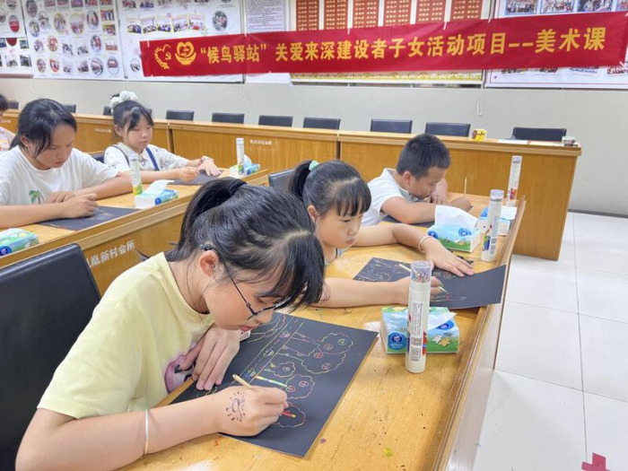 “孩子们课余生活单调,家长们也常因工作无暇陪伴,”参与项目组织的社区工作者表示,“‘候鸟驿站’就是想通过家门口的公益课堂,填补这段‘真空期’,让孩子们在安全友好的环境里培养兴趣、结交伙伴。”如今,社区活动室成了孩子们的乐园:课堂上,他们专注临摹、肆意创作;课后,围绕作品交流互动,欢声笑语不断。这些课程不仅丰富了课余生活,更成为来深建设者子女增进互动、提升社区归属感的纽带。