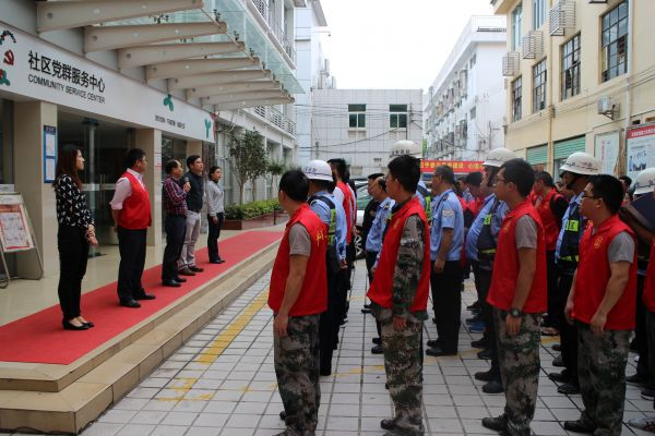 活动共分为两支大队伍,一支是由凤凰社区领导班子带领的整治大队,人员近120人,主要负责清理乱张贴、乱涂写、乱堆放、清理超门店经营、处理大件废旧垃圾等,并出动消防车辆协助清理社区内乱搭接电线和拆除违法雨棚等;另外一支则是由社工+义工组成的环保大队,人员共23人,主要负责社区卫生死角的清理,文化雕塑的清洁;两支大队伍分区域集合,但是拥有着共同的目标,就是让社区更加美丽。