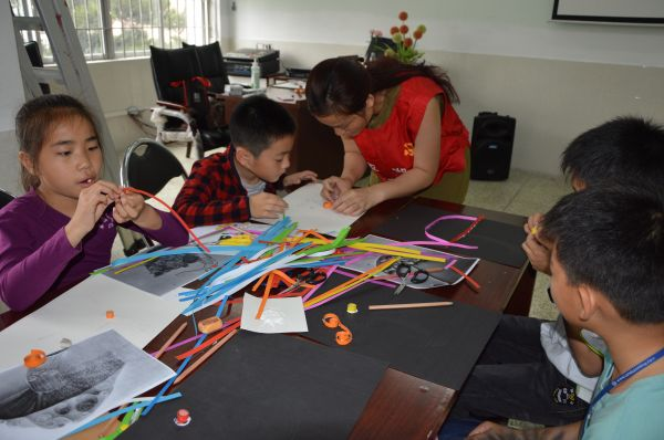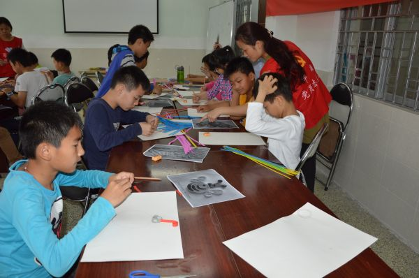 课堂上,老师从构图到卷纸手法都教得非常仔细。小朋友们按照老师的教学方法,在党员者愿者的帮助下开始做得有模有样。蝴蝶、小乌龟、跳舞的女孩都一个个跃然纸上。课后,家长们都纷纷表示感谢:我们家庭收入不高,平常没能力培养孩子的兴趣爱好,非常感谢服务中心这次提供的免费学习机会。美术课程不仅丰富了小朋友的周末生活,更是让他们在愉快的氛围中学习到绘画的知识。