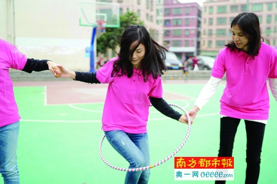 女神们“穿越呼啦圈”。