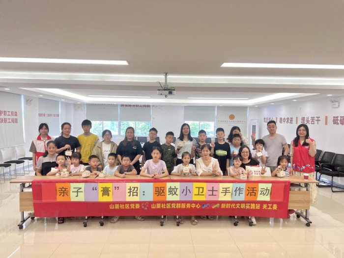 近期,登革热、基孔肯雅热等蚊媒传染病进入高发期,为增强辖区居民特别是儿童青少年的防蚊意识,倡导科学健康的生活方式,8月21日上午,在平湖街道山厦社区党委的领导下,山厦社区党群服务中心、山厦社区新时代文明实践站、妇联、关工委联合开展“亲子膏招:驱蚊小卫士手作活动”,将健康科普与趣味手工巧妙结合,共筑社区健康防护网。