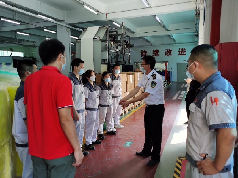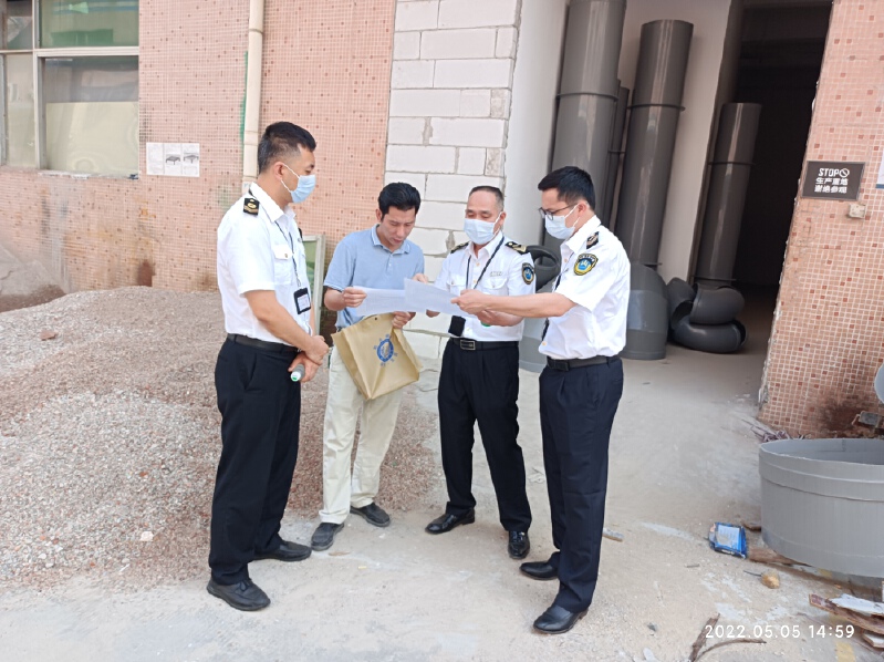 ▲执法人员开展企业巡查走访并解答企业疑问。