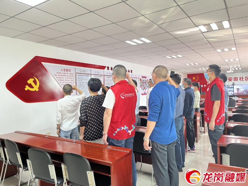 在良安田社区,根据辖区小区围合管控情况,社区整合区、街部门支援力量以及社区股份公司、物业服务企业、相关单位、居民志愿者等队伍力量,率先成立良安田社区城中村、茗萃园一期、二期、三期及良安田花园等5支小区服务保障队,并设立临时党支部,确保封闭期间小区管理及居民服务保障工作落实到位,全体支部书记重温入党誓词,号召大家不忘初心、牢记使命,坚决打赢疫情防控阻击战。