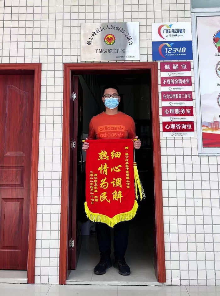 袁子健是深圳市龙岗区平湖街道鹅公岭社区一名普通的人民调解员。自2009年任职以来,他始终耕耘在基层调解一线,在调解岗位上度过了13个春秋。2021年底,他荣获龙岗区第二届“人民满意调解员”称号,并成立了“子健调解工作室”。