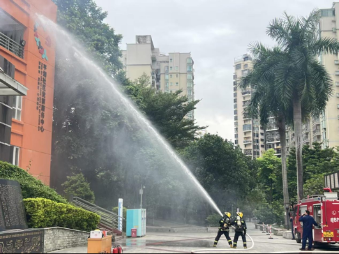 11月9日下午,平湖社区党群服务中心广场开展消防应急演练,模拟真实火情场景。警报响起后,社区工作人员与物业人员迅速开展火情排查、警戒设置及人员疏散,平湖社区消防站消防员及时扑灭“明火”,全程紧张有序。消防队员还现场演示灭火器、防烟面罩等消防器材的使用方法,帮助居民掌握自救与扑救基本技能。