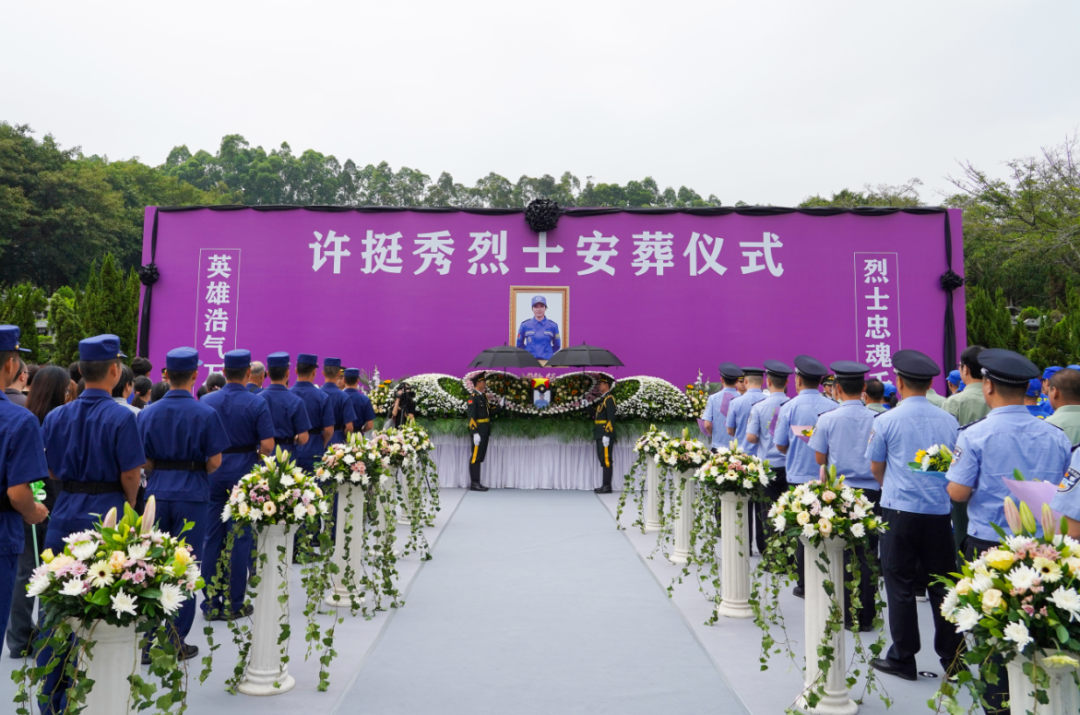 壮举载誉千秋,英名万古流芳。10月18日,龙岗区恩德圣地陵园举行许挺秀烈士安葬仪式,缅怀救援英雄,祭奠烈士英灵。