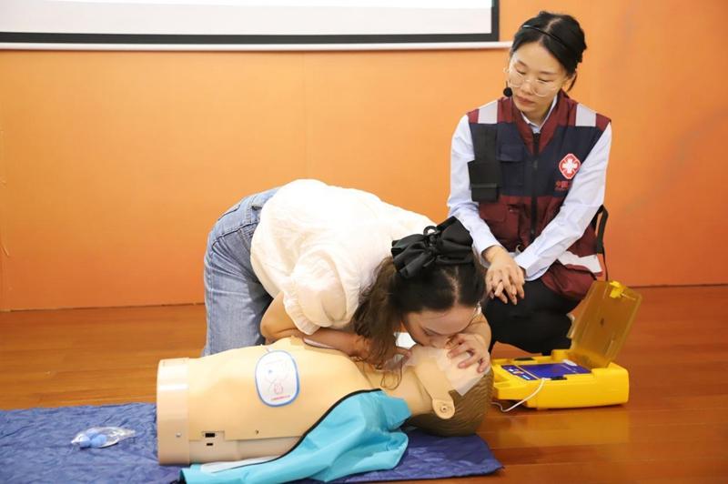 急救训练营现场,坂田公卫中心推出“考核+培训+演练”3大模式,融合智能化与标准化为一体的心肺复苏联动设备。该心肺复苏模型联动系统屏幕,屏幕上可实时显示按压的力度、深度、吹气量等,借助系统现场即可判断按压姿势、深度、力度是否专业标准。心源性猝死,一直以来是人们生活中潜藏的隐形杀手,心脏骤停的最佳抢救时间短,一般称为“黄金4分钟”。坂田公卫中心工作人员利用鲜活的案例、动画视频、现场实操、联动心肺复苏系统模型,手把手指导居民如何把握“黄金四分钟”进行快速有效的心肺复苏及AED使用。参与培训的教职工表示:“这么就近的急救培训非常便捷,今后会考虑组织一批批学生过来参加,让更多的人掌握急救技能。”