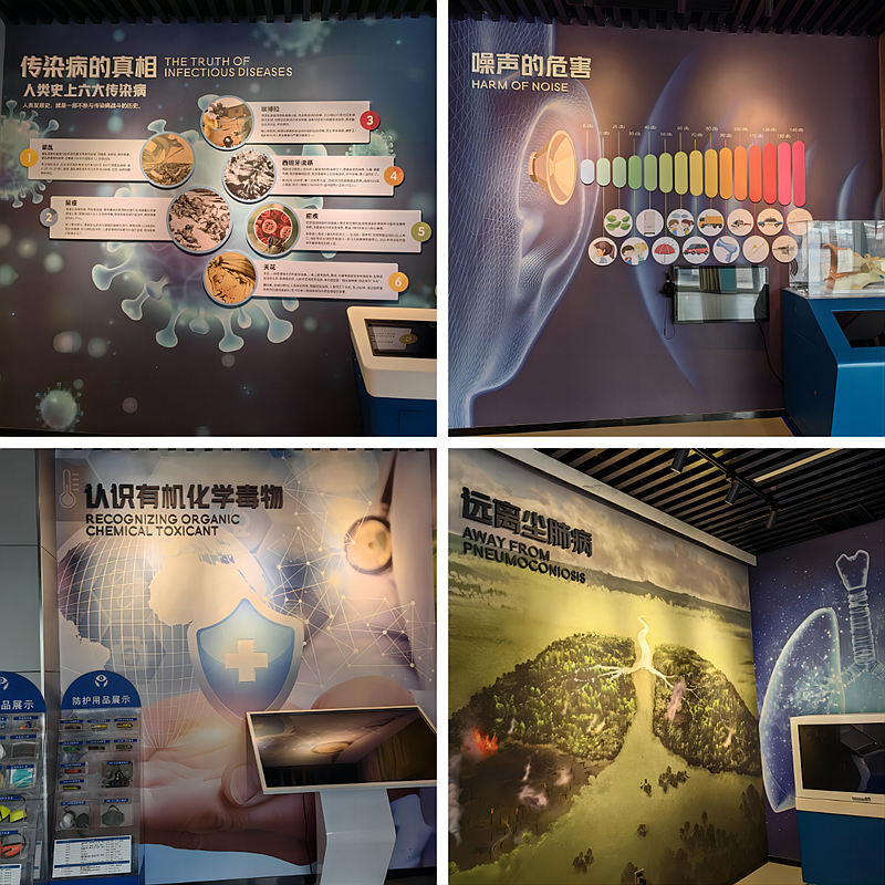 坪地公共健康科普基地一期于2022年12月动工,2023年2月23日启用。基地由四个展区组成,内容以职业健康、传染病、慢性病、健康促进为主题,通过互动设备、沉浸式体验场景为载体,结合科普图文知识体系,设立了《传染病的真相》《噪声的危害》《认识有机化学毒物》及《远离尘肺病》四大主题展区。