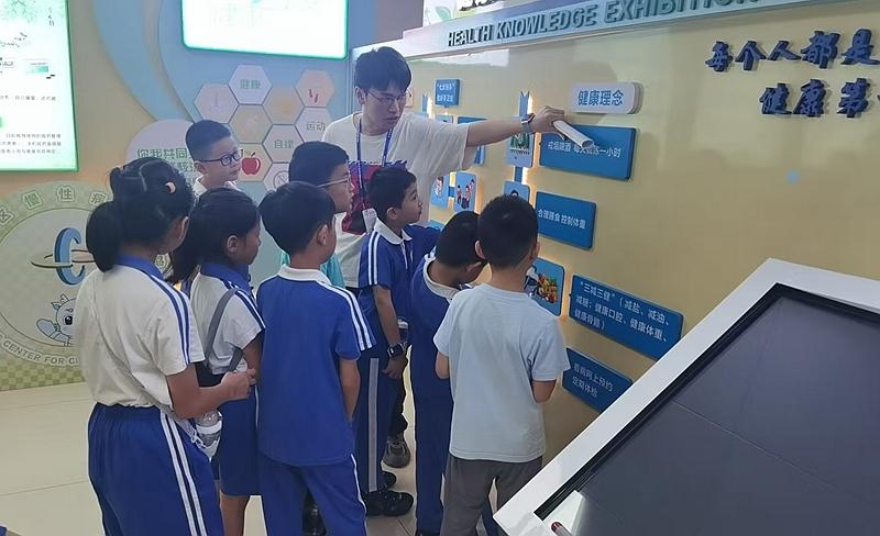 活动伊始,学员们齐聚龙岗区慢病院。在讲解员的引导下,首站“慢病科普园游学”拉开帷幕。园内丰富的图文展板、互动模型及多媒体设备,生动揭示了慢性病的成因、预防及治疗知识。复杂医学知识被巧妙转化为趣味问答与情景模拟,学员们踊跃参与互动,认真记录要点。“原来高血压和肥胖关系这么密切,以后一定要多运动,保持健康体重!”一位来自龙岗某小学的李同学在活动后深有感触。