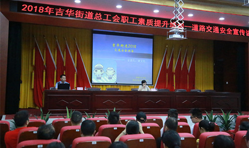 为全面贯彻落实党的十九大报告中关于“生命至上、安全第一,坚决遏制重特大安全事故”的精神,落实区总工会关于交通安全工作的相关部署,宣传交通安全意识,增强职工群众守法意识,引导职工群众安全文明出行,8月24日下午,吉华街道总工会开展2018年吉华街道总工会职工素质提升培训——道路交通安全宣传讲座。现场有60多名来自机关、社区、企业的工会干部和工会代表参加此次培训会,现场发放宣传资料100余份。