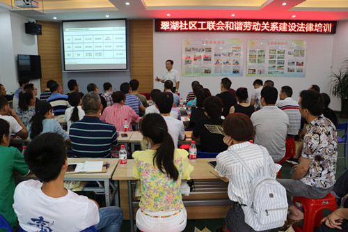 为提高企业负责人对创建和谐劳动关系的认识,科学准确地界定劳资双方的合法权益边界,正确处理劳资矛盾,保障职工和企业的合法权益,维护和谐稳定的发展环境,8月24日,翠湖社区工联会邀请广东华商律师事务所专业律师,为翠湖社区物业管理公司、重点企业以及民办幼儿园负责人开展了有关劳动合同法、合同法和劳动争议调解仲裁法等方面的法律进园区系列培训。